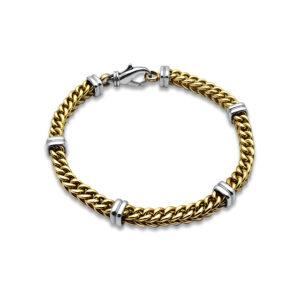 This fancy clip bracelet design is all in solid gold links. It starts with a large link and follows with three smaller links. A unique design you will Love.