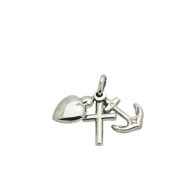 This beautiful charm in white gold features the three virtues of hope, faith and charity. This would make a lovely addition to your charm bracelet or even as a baby gift!