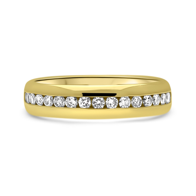 This classic and unique channel set diamond eternity band features round brilliant cut diamonds all the way around. Show your love with this anniversary diamond eternity band, gift that will last forever!