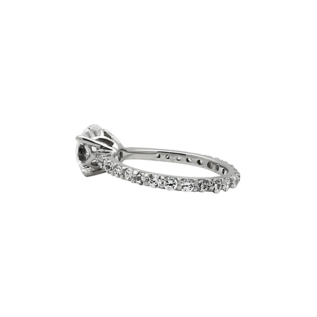 This astonishing diamond engagement ring is really a design of art, for the special person in your life. The centre diamond is set if four prong setting followed by round brilliant cut diamonds around the ring. There is approximately 2ctw of diamonds in this ring depending on the ring size. An elegant design followed by sparkle. Ultimately, a design she will love forever!