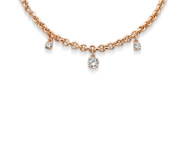 Solid white gold rolo chain, featuring a stunning array of three eye-catching floating diamonds. That reprecents, past , precent and future. Shimmering and classic, this beauty is a masterpiece of sophistication. Matching Bracelet is available.