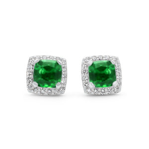 These emerald earrings are simply sparkling and set in a soft square framed diamond halo. Matching pendant and ring is available!