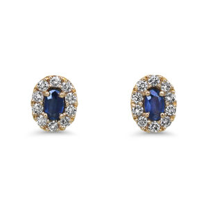 A natural oval sapphire earrings is set in yellow gold & beautifully surrounded by a layer of diamonds. Feel like a royal and match it up with the beautiful pendant!