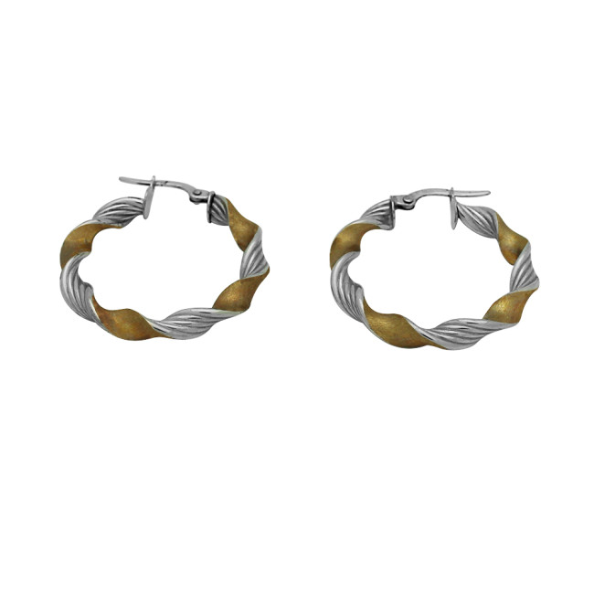 These beautiful twisted hoop earrings, features a two-tone finish. Pair it up with your existing two-tone jewellery collection.