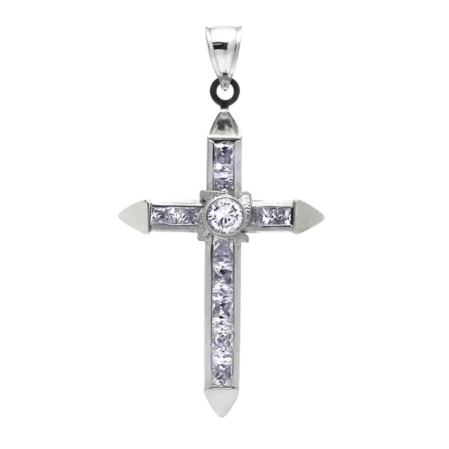 10k White Gold Cubic Zircon Cross.