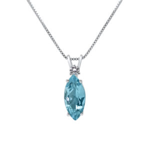 14k White Gold Marquise Shape Blue Topaz Pendant.