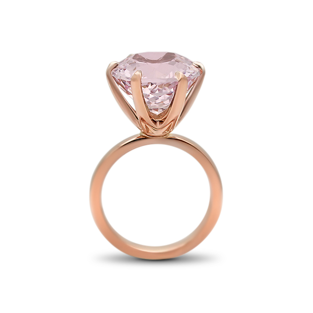 Very Glitzy design with six claw setting. Simple but impeccable workmanship makes this an extremely luxurious piece. Followed by an oval rosy/peach morganite gem.