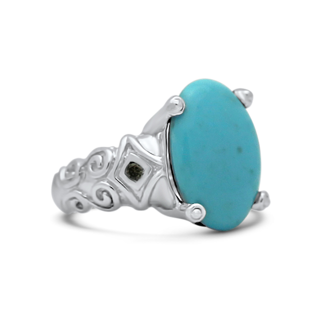 This bold oval turquoise gem is set in a four claw setting that features the dreamy sky blue gem.
