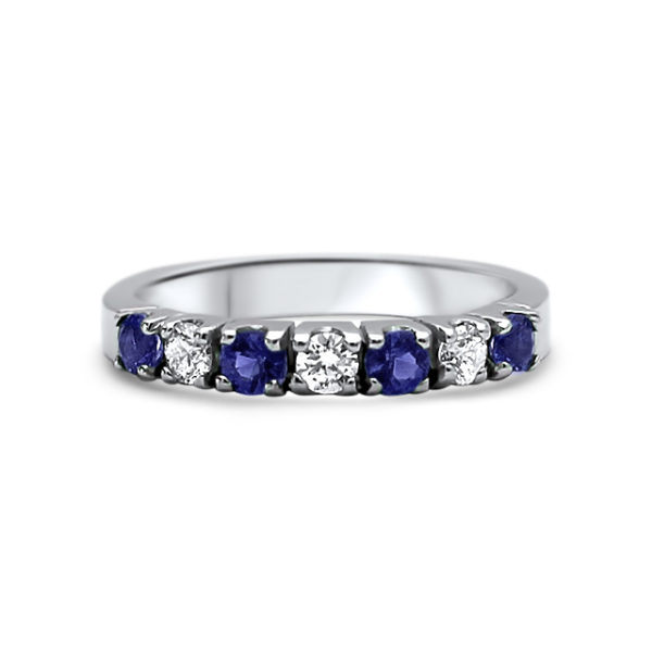 Newly added white gold ring in claw set, this includes shimmering diamonds with royal blue sapphires. Perfectly made for your queen!