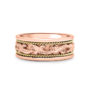 This wedding band has a leaf inspired design along the centre, contrasted by a fine yellow gold handmade twist. Available in rose gold.