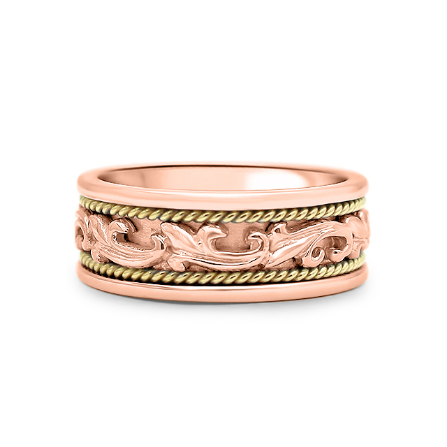 14k Two Tone leaf Wedding Band in Solid Gold.