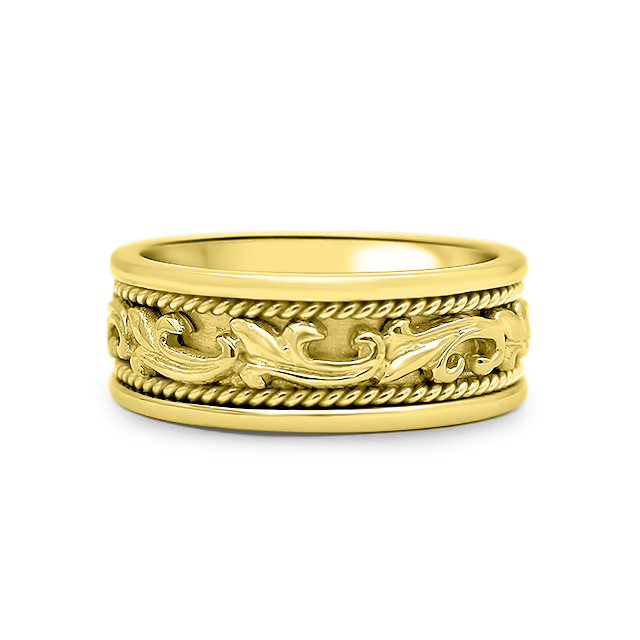 14k Yellow Gold leaf Wedding Band.
