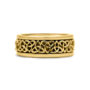 You don’t have to have an Irish heritage to wear this Celtic Wedding Band. This is the celtic knot, also known as the trinity knot. This is a Holy symbol, and has many meanings, one of them being past, present, future. Available in yellow gold.